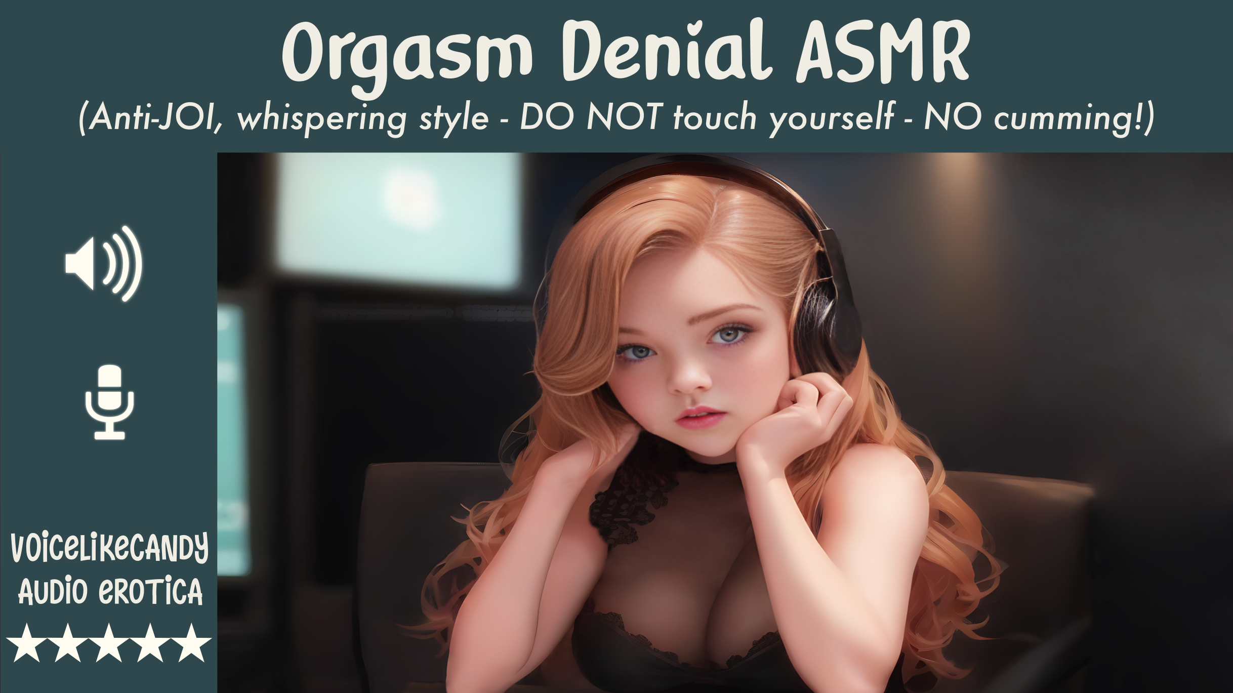 I’ve been wanting to try some erotic ASMR, so here’s something of a parody in the style of a very popular vanilla ASMR artist from YouTube. So don your headphones, lie back and close your eyes, keep your hands at your sides (you naughty, naughty boy) and let Dr. Candy help you break your masturbation addiction as I describe all the dirty, dirty thoughts you need to block from your wicked mind so you can fall asleep.