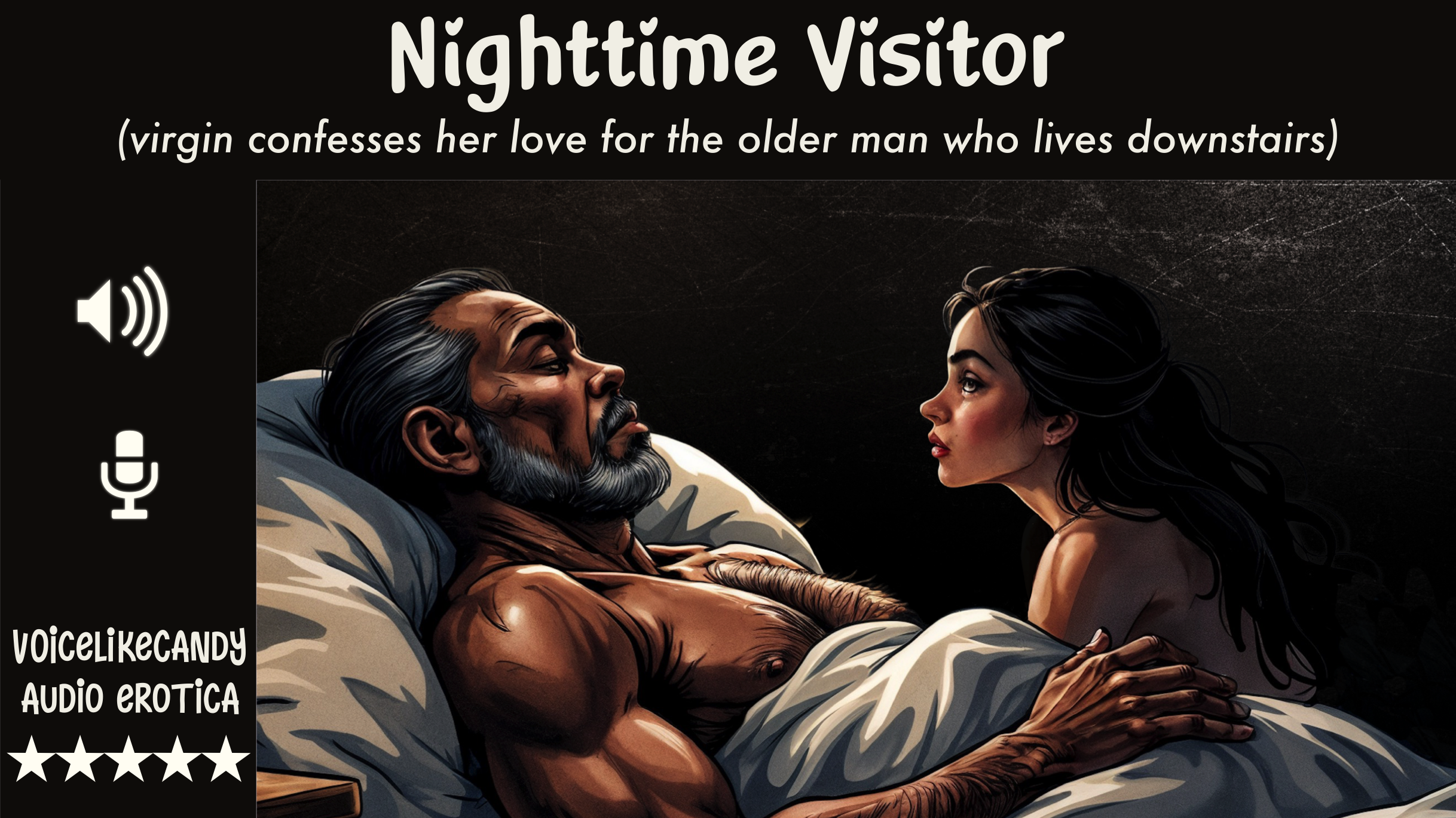 Callie sneaks into the bedroom of the older black man that lives downstairs, kneeling beside his bed to confess that she is in love with him, much to his surprise. When she tells him she’s a virgin and she wants him to pop her cherry, he invites her into his bed without hesitation, and makes her wish come true!