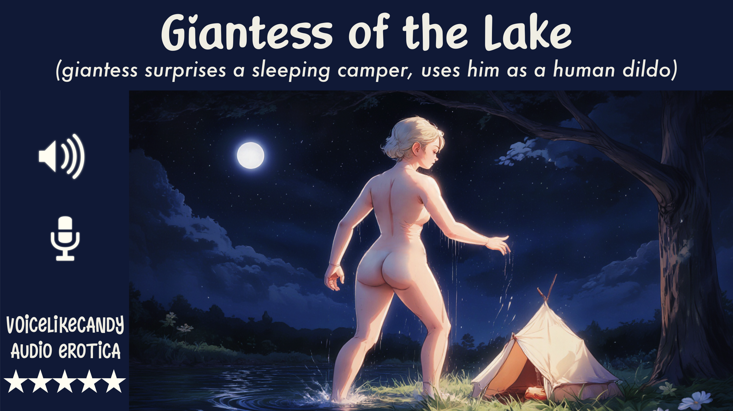 A sleeping camper wakes to a 20 foot naked woman standing over him, dripping from her bath in the lake. Being so large, her only form of pleasure comes from masturbation, which can be quite lonely, but as she holds his small body in her fist, she comes up with an idea of how he can help her cum…